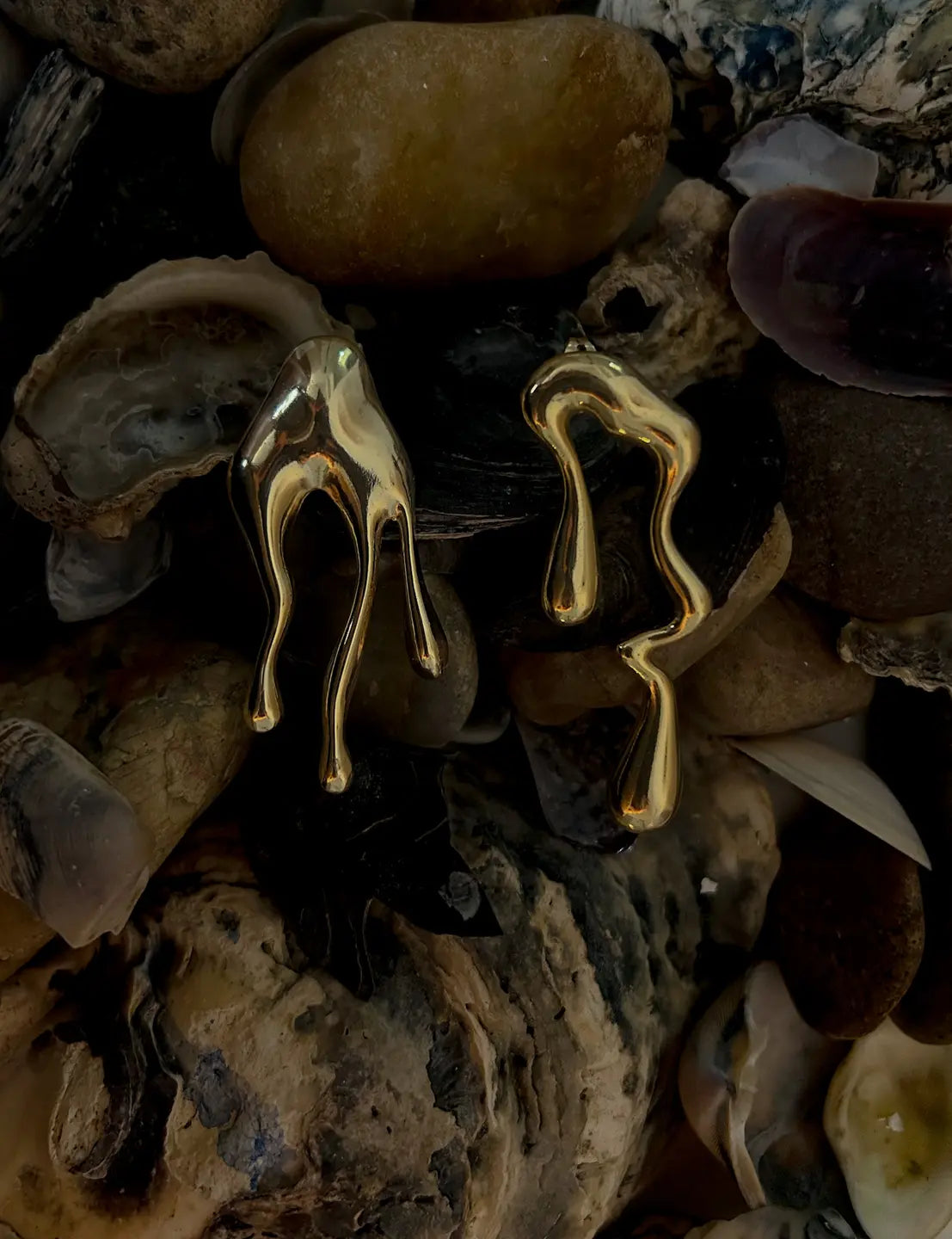 A surreal blend of art and adornment, the Golden Melts earrings flow like liquid gold, cascading softly from the ear with effortless elegance.